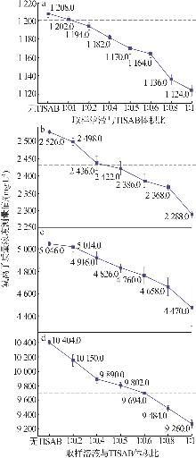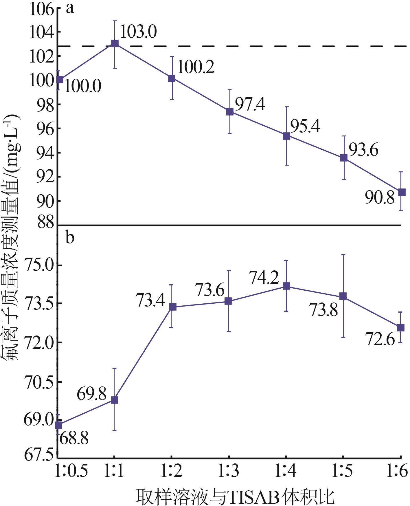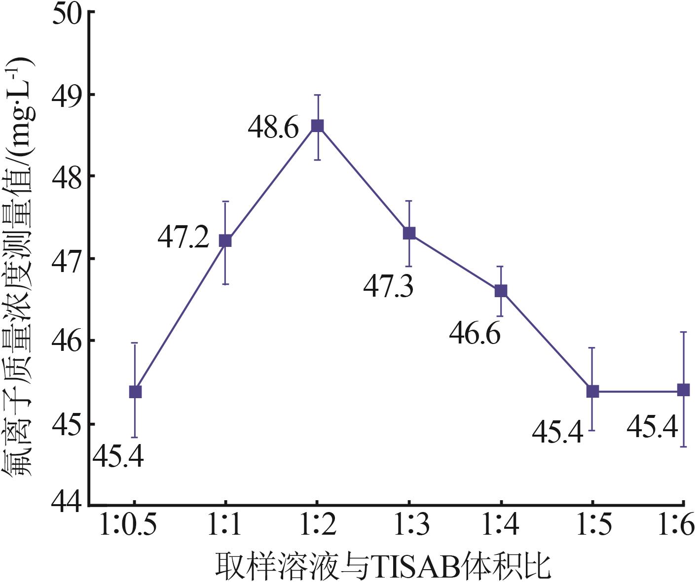 当前,针对溶液中氟离子质量浓度的主流测定手段是氟离子计法,此法因操作简便、快捷、准确性高等优点而被普遍采用;但将其直接应用于测定铝工业危废处理过程中产生的成分复杂的含氟溶液时,准确度会大幅降低。为提高测量精度,以配制的标准含氟溶液为研究对象,研究总离子强度调节缓冲液(TISAB)对分析结果的影响。研究发现,适宜的TISAB添加量受溶液中氟和铝离子浓度的影响。溶液中不含与氟络合的离子时,可按取样溶液与TISAB体积比为1∶0.5进行初测,根据初测结果再参考不同氟离子浓度与TISAB最佳体积比的规律调整正式测定的比例。溶液中含铝等能与氟络合的离子时,需在测定前分析铝离子浓度并确定TISAB添加量。对铝离子质量浓度高于120.0 mg/L的溶液,可将铝离子质量浓度稀释至120.0 mg/L,并选择取样溶液与TISAB体积比为1∶1进行测量。若铝离子质量浓度较高而氟离子质量浓度较低,不适合过度稀释,则可稀释铝离子质量浓度至240.0 mg/L,并将取样溶液与TISAB的体积比设定为1:2进行测量,此时需在测试结果上加4.50%的正偏差。此方法能在复杂含氟溶液的测量中,将误差控制在2.00%以内,这可为其他复杂成分含氟溶液的准确测量提供参考。