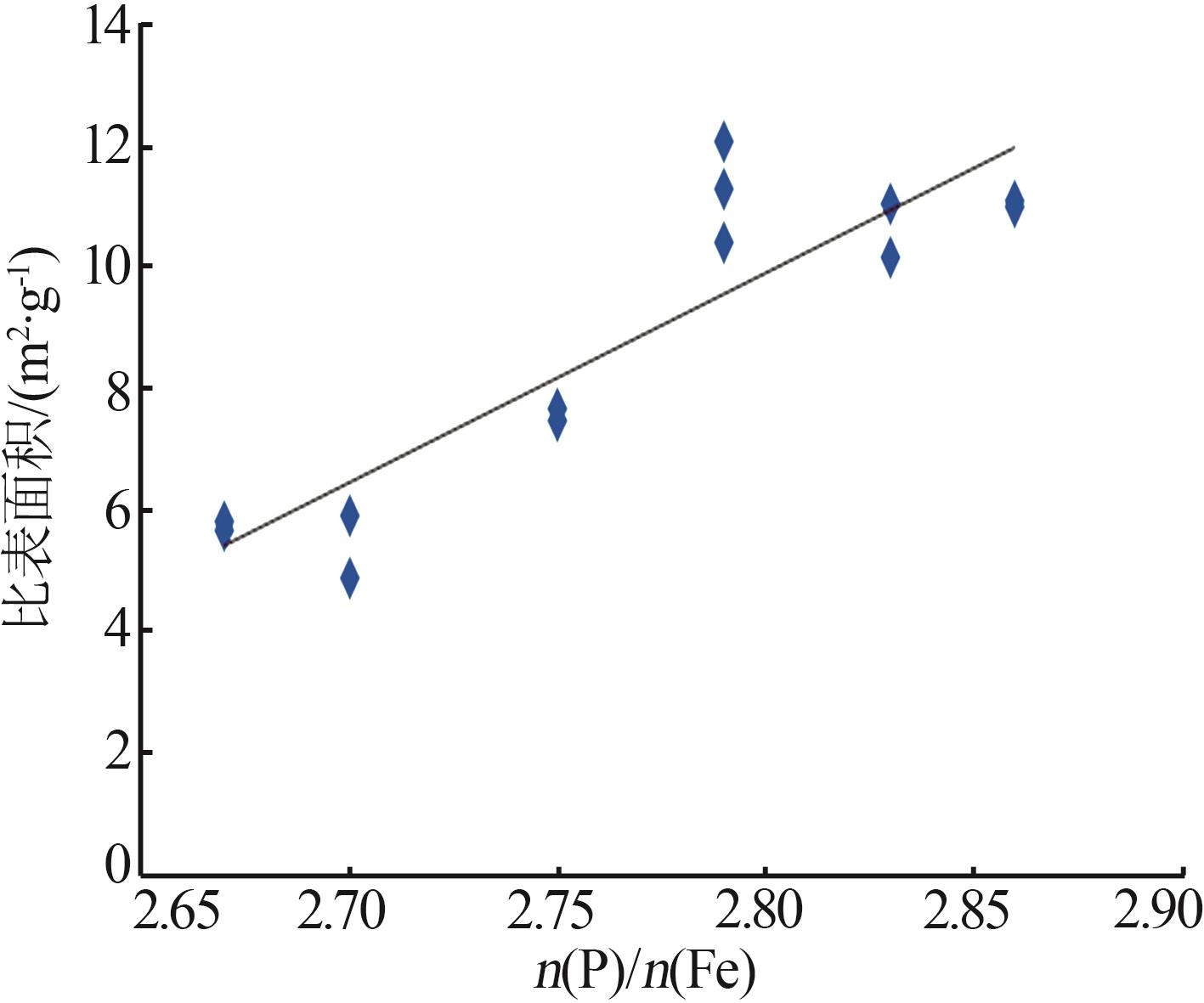In order to obtain the industrial production technology conditions for ferric phosphate by using pure iron,Yunnan Yuntianhua Co.,Ltd.,R&D Center after completing the small-scale exploratory experiment and model verification experiment,built a 1 000 t/a pilot plant for ferric phosphate production.The process used high-purity iron ingots(99.9%),purified phosphoric acid(85.0%),and 27.5% hydrogen peroxide as raw materials to produce ferric phosphate by the process of phosphoric acid dissolving iron,hydrogen peroxide oxidizing and precipitating dihydrogen phosphate.The process required the phosphate dihydrogen phosphate solution Fe2+ mass fraction to be controlled as the target during the phosphoric acid dissolving process,and the optimized process conditions were as follows:phosphoric acid mass fraction of 26%~27%,dissolving temperature of 88~90 ℃,and dissolving time of 13~15 h.Suggestions were also given for the storage of phosphate dihydrogen phosphate solution.When the mass fraction of the phosphate dihydrogen phosphate Fe2+ was controlled at 44~46 g/L and the n(P)∶n(Fe) ratio was(2.65~2.75)∶1,the optimized oxidation precipitation process conditions for producing products with specific surface area as the target were as follows:the initial oxidation temperature of 62~64 ℃,and the hydrogen peroxide feeding time of 50~60 min.The final ferric phosphate product had a P mass fraction of 20.40%~20.70%,Fe mass fraction of 36.18%~36.58%,n(Fe)∶n(P) of (0.970~0.985)∶1,particle size D50 of 3~5 μm,specific surface area of 6~9 m2/g,bulk density greater than 0.60 g/cm3,magnetic impurities controlled below 0.5 mg/kg,and all the indicators met the requirements for battery-grade ferric phosphate.