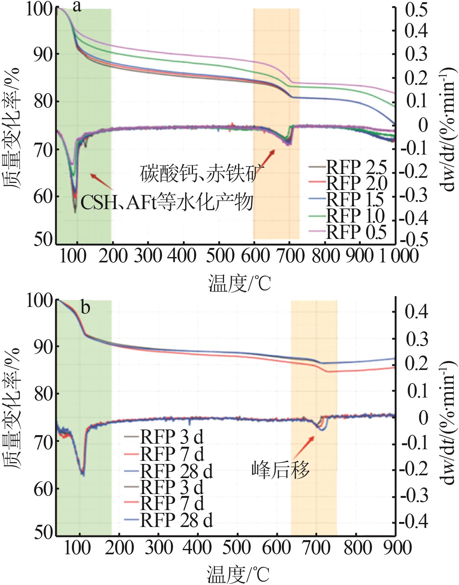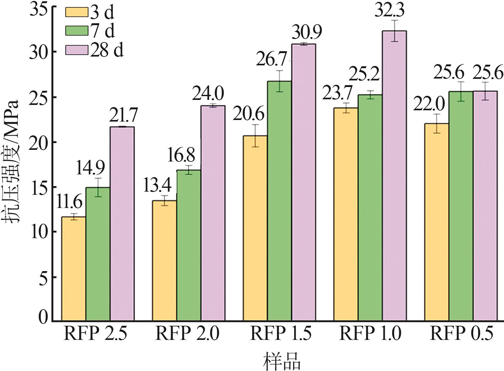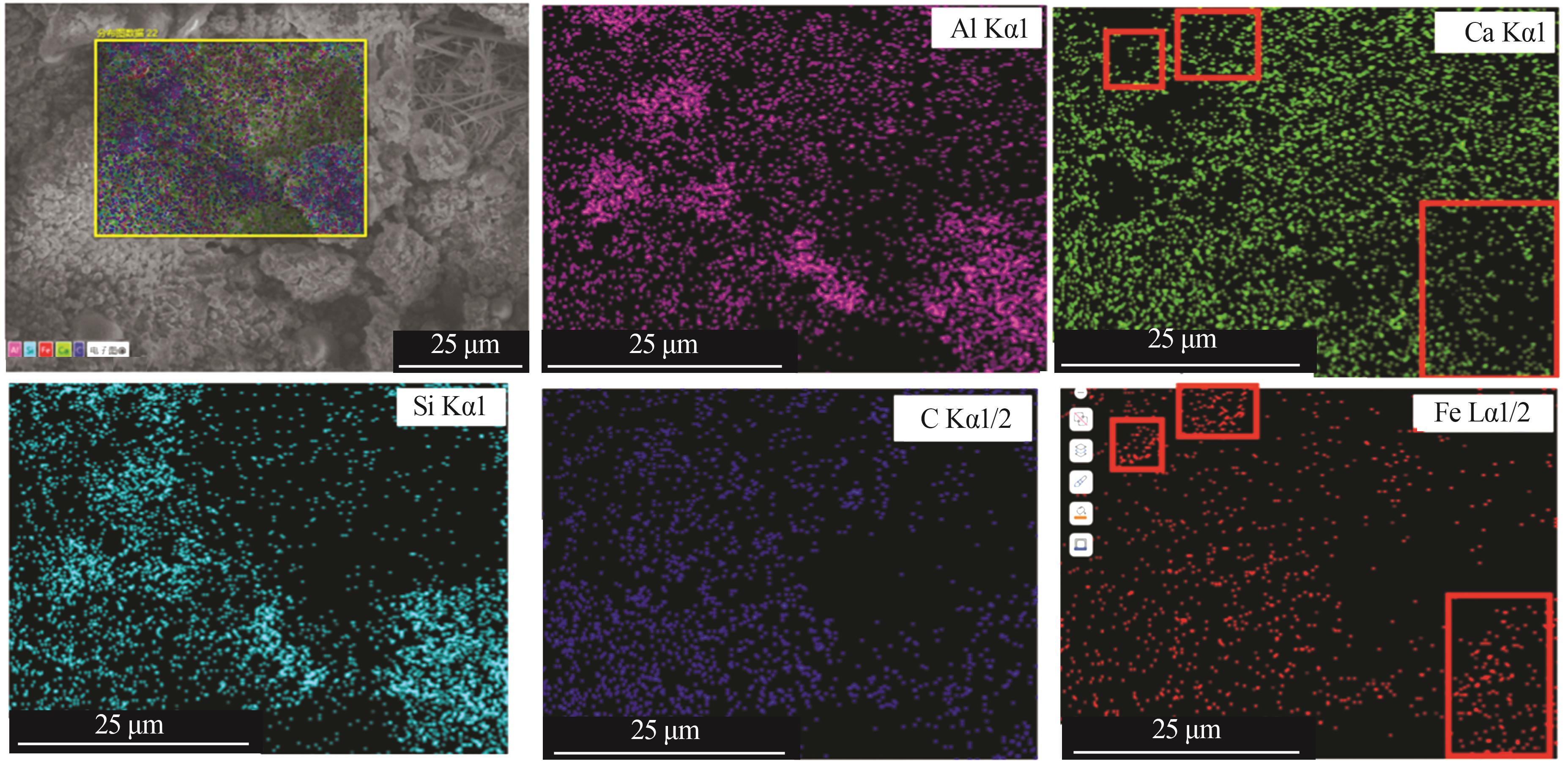 Red mud is an industrial solid waste generated from the refining of alumina in bauxite mines and there are still problems with its hydration mechanism and polymerization behavior when used as a cementitious material to replace cement.In this study,the mechanical properties and hydration products of Bayer red mud and fly ash geopolymer(RFP) were characterised by compressive strength,X-ray diffraction(XRD),inductively coupled plasma emission spectrometer(ICP) and scanning electron microscope-energy spectroscopy(SEM-EDS) testing methods,as well as the hydration mechanism and behaviour of the red mud.It was found that the strength was increased gradually with the increase in the ratio of red mud to fly ash,reaching a maximum of 32.3 MPa at a ratio of 1.During the RFP polymerisation to produce strength,hydration of the cement occured throughout the polymerisation process,followed by the reaction of reactive alumina and reactive silica in the mineral admixture to produce silica-aluminate products and finally carbonation.The results of XRD and ionic concentration tests indicated the presence of Fe3+ substitution for Ca2+ to generate ferroaluminate aggregation during RFP hydration.This study provided theoretical support for the investigation of the production of geopolymers from red mud by the Bayer method,which was of great importance for the widespread use of red mud as an industrial solid waste.