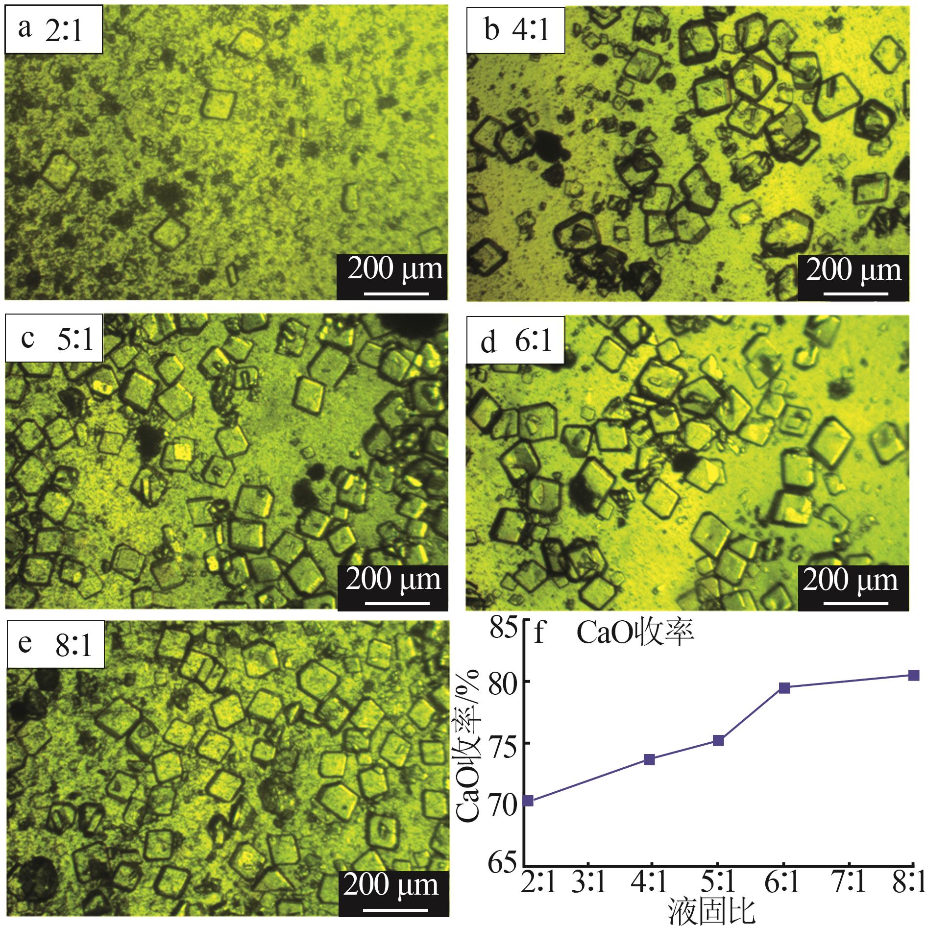 Glauberite gypsum is the leaching tailings produced during the dissolved leaching of calcium glauberite ore.Due to the low purity and high content of insoluble impurities,there are very few application avenues.In response to the above problems,utilizing a crystalline phase transition method,dihydrate calcium sulfate from glauberite gypsum was successfully transformed into large glauberite crystals.These were then separated from smaller insoluble impurities based on particle size differences.Controlled hydration leaching conditions facilitated the conversion of glauberite back into dihydrate gypsum to obtain high-purity dihydrate gypsum.The impact of variables such as sodium sulfate mass concentration,temperature,leaching duration,and liquid-to-solid mass ratio on the size of the glauberite crystals and the yield of CaO were analyzed meticulously.Optimal conditions were identified:sodium sulfate mass concentration of 20%,temperature of 85 ℃,leaching duration of 3.0 h,and liquid-to-solid mass ratio of 6∶1.These conditions resulted in the formation of large-sized glauberite crystals and enabled effective separation of impurities by physical means such as sieving and cyclone,achieving a CaO yield of 79.60% and producing gypsum with a mass fraction of 89% after leaching.