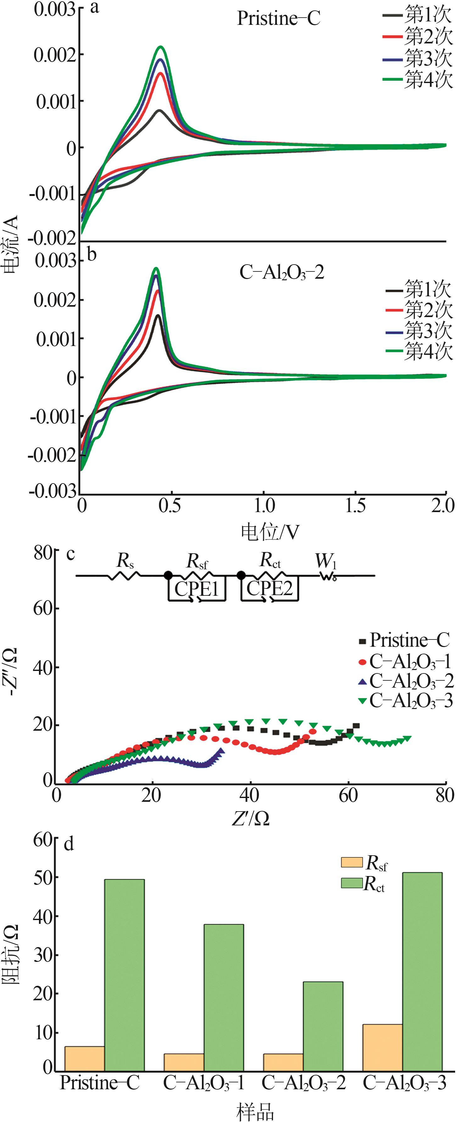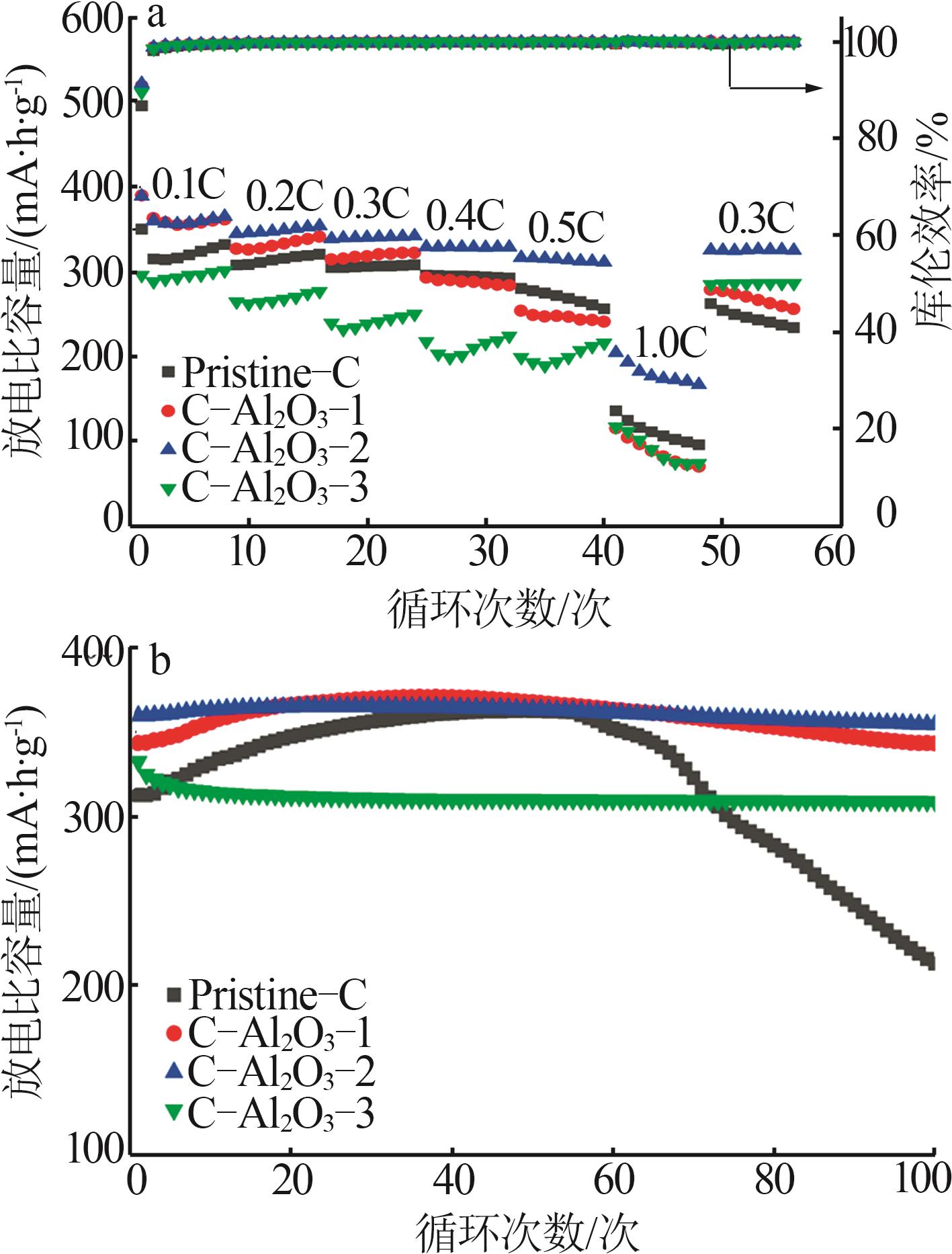 C-Al2O3-2 (本工作) | 沉淀法 | 91.64 | 354.37 (0.1C,100次) | 98.59(0.1C,100次) |