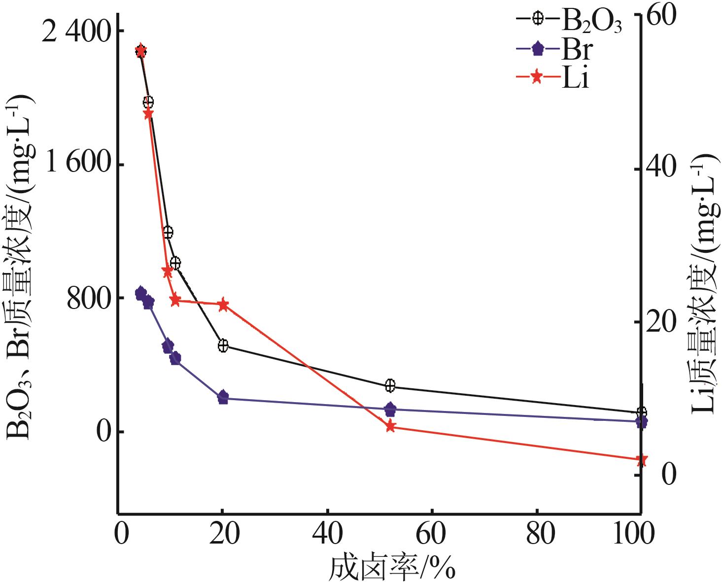 | w(K) | w(Na) | w(Ca) | w(Mg) | w(Li) | w(B2O3) | w(Br) | w(SO42-) | w(Cl) | |