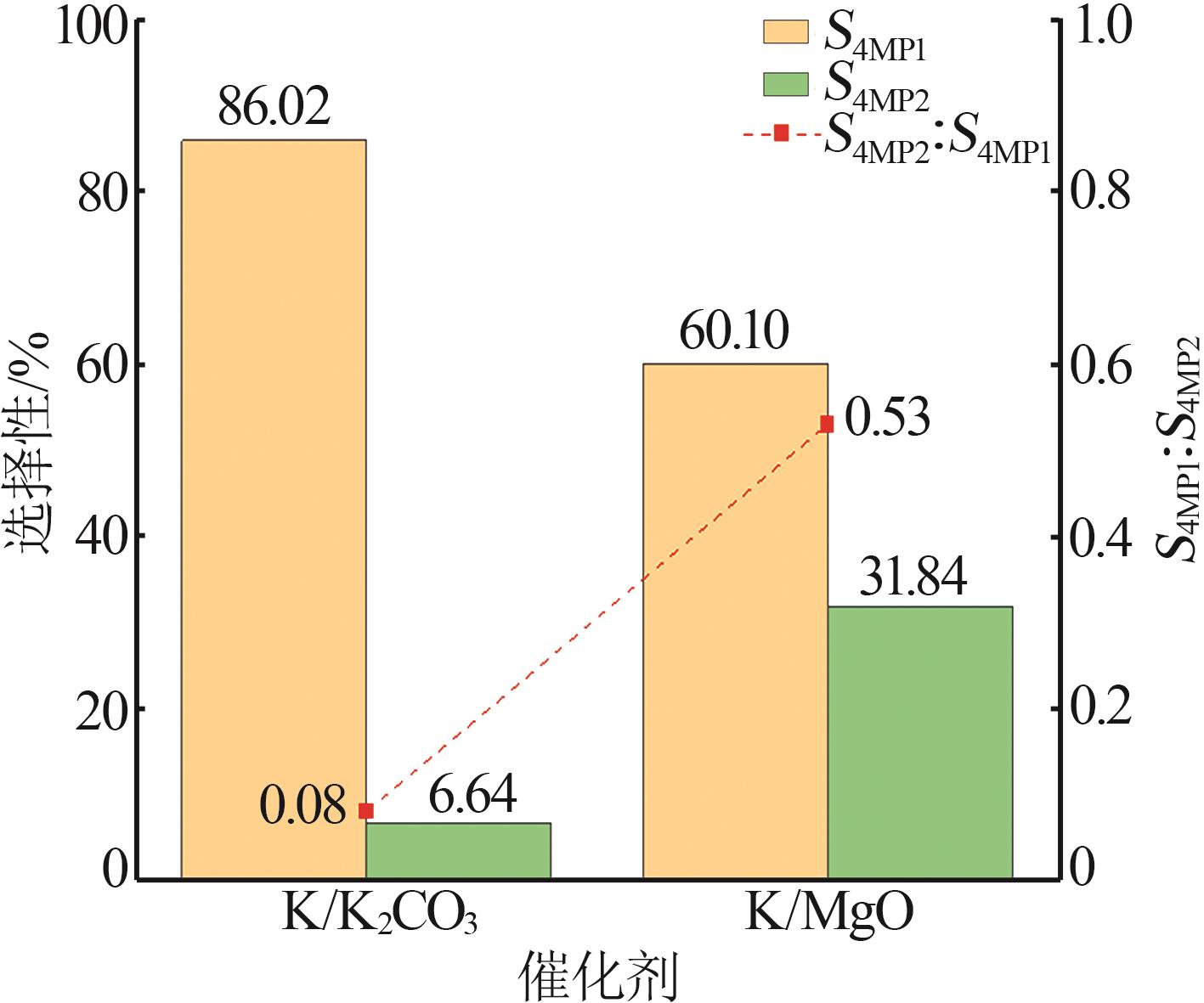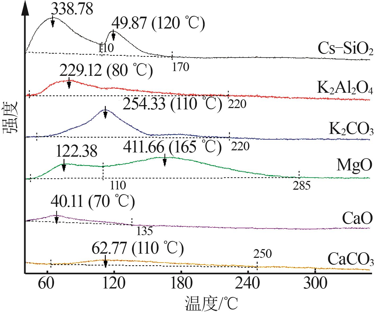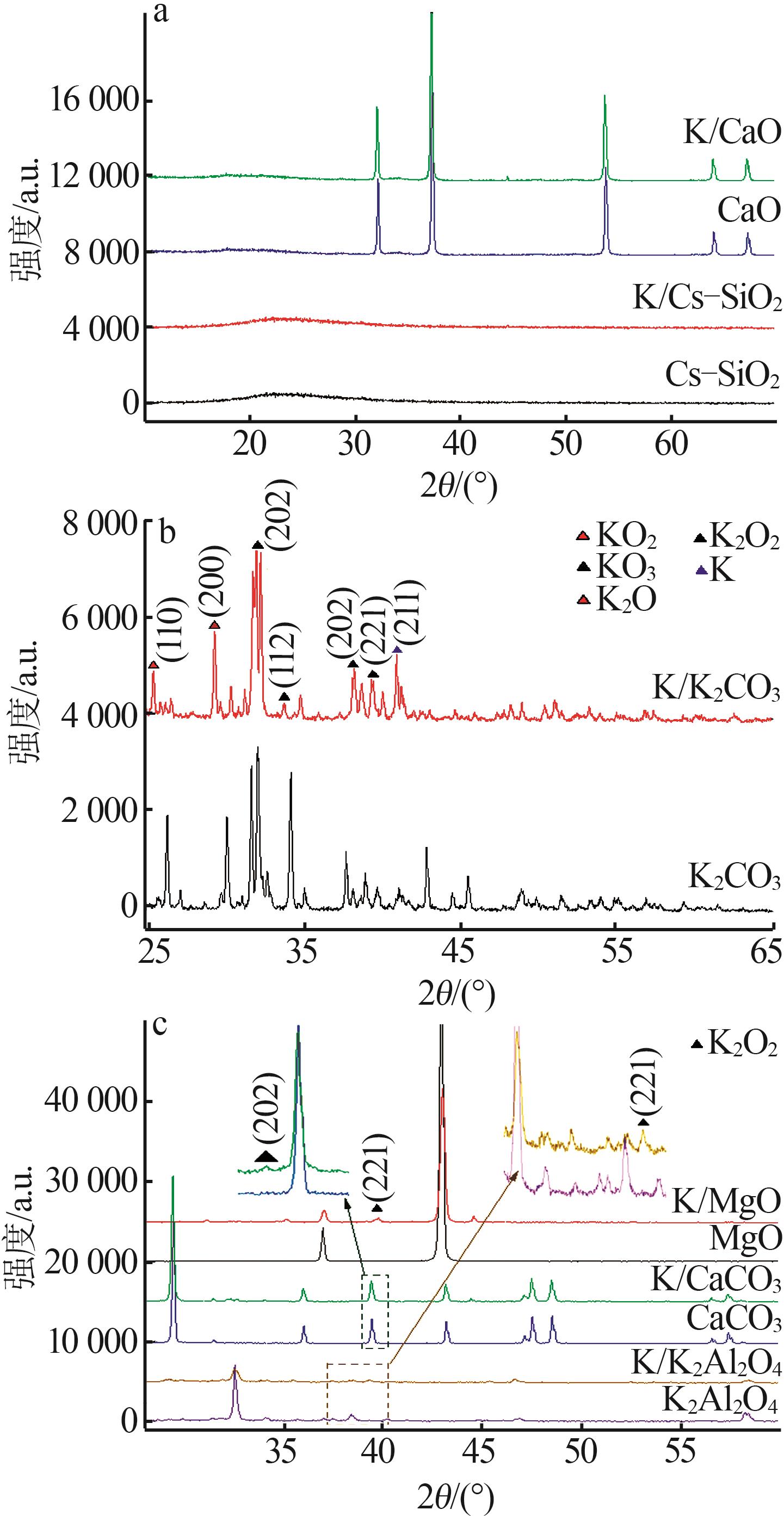 A series of solid superbase catalysts were prepared by using alkali metal oxides or salts with different pore structures and alkali strengths as carriers,and supporting metal K by melting method,to investigate the effect of the physical and chemical properties of carrier on the surface alkali strength and the catalytic performance of potassium supported catalysts for propylene dimerization.The carriers and catalysts were characterized by N2 adsorption desorption,CO2-TPD,Hammett titration,XRD and other methods,and their catalytic performance for propylene dimerization was investigated in a batch reactor.The surface alkali strength of each carrier was significantly increased after loading potassium.The catalysts with K2O2 had catalytic effect on propylene dimerization.The K/K2CO3 catalyst had the highest K2O2 content and showed the best catalytic performance,offered a propylene conversion and 4MP1 selectivity at 96.13% and 86.02%,respectively.It was indicated that the central superbase sites of the catalyst surface were mainly provided by the K2O2 species formed by the interaction between the supported metal K and the carrier.The carriers with higher surface alkali strength were more conducive to the formation of central superbase sites on the catalyst surface.In the catalytic propylene dimerization reaction,the higher the content of K2O2 species on the catalyst surface,the higher the conversion rate of propylene.The selectivity of producing the target product 4MP1 was related to the distribution of alkaline strength of the basic sites on the catalyst surface and the suitable Hammett index range for alkaline strength was 33~35.It was independent of the specific surface area and average pore size of the carriers.