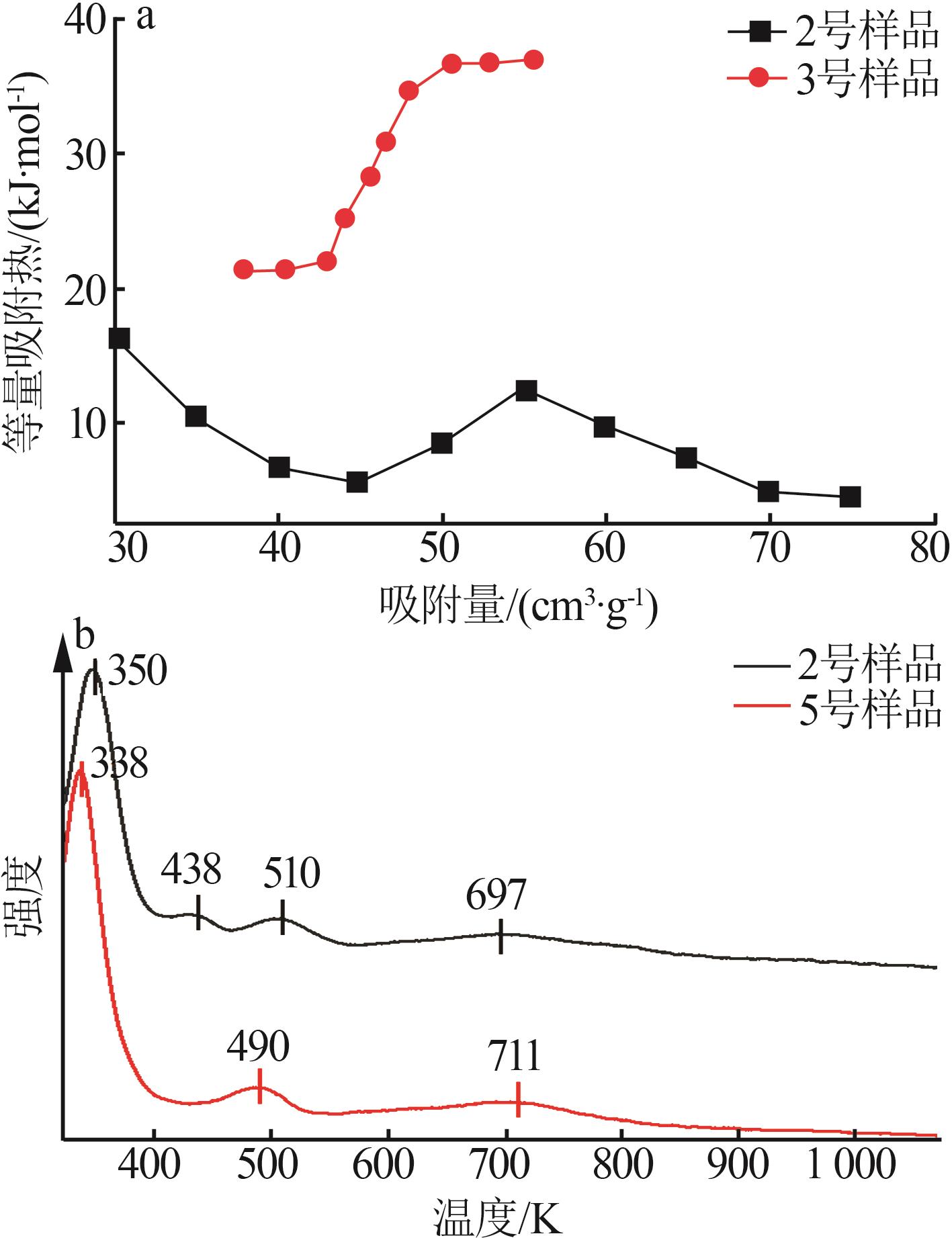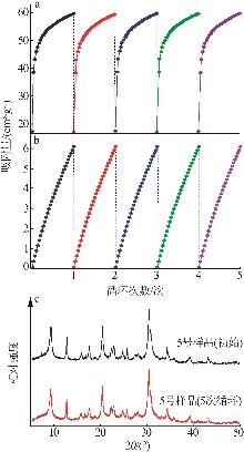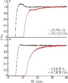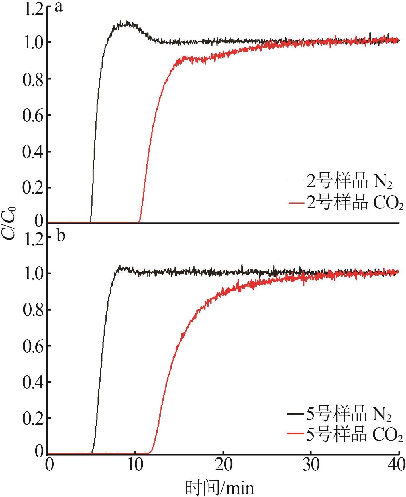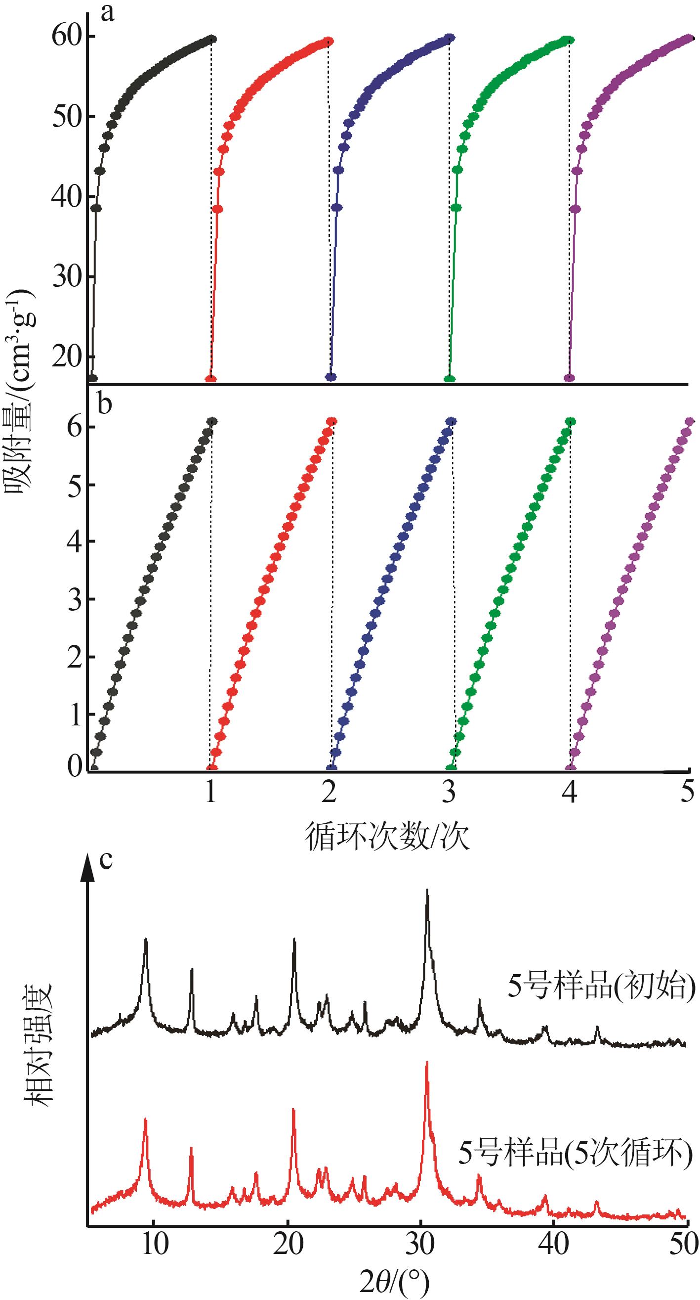 CHA zeolite,with its unique eight-membered ring pore structure,has potential industrial application prospects in the field of CO2 adsorption and separation.In order to achieve the research goal of low-cost and green synthesis of high-performance zeolites,zeolite CHA was synthesized at low temperature without the use of organic structure-directing agents,and its CO2/N2 separation properties were investigated.The effects of crystallization temperature,time,and K+ content on the synthesis of pure-phase CHA zeolite were comprehensively investigated using characterization techniques including XRD,SEM,FT-IR,EDS and TGA.The CO2 and N2 adsorption isotherms at 273 K and 298 K were measured,and the CO2/N2 IAST(Ideal Adsorption Solution Theory) selectivities were calculated.The results showed that the conditions of crystallization at 353 K for 288 h,the CHA zeolite prepared with the synthesis formula of n(SiO2)∶n(Al2O3)∶n(K2O)∶n(H2O)=1∶0.2∶0.4∶35 exhibited high CO2/N2 adsorption and separation performance(IAST selectivity value of 51.2).Adsorption mechanism studies were conducted.The four-parameter Dual-site Langmuir model and the three-parameter Langmuir-Freundlich model were used to fit the CO2 and N2 adsorption data,both showing high goodness of fit with coefficient of determination(R2) exceeding 0.999.Additionally,isosteric heats calculations and CO2-TPD tests were performed.The results indicated that the CO2 adsorption behavior belonged to heterogeneous physical adsorption.The method of low-temperature hydrothermal synthesis of CHA zeolite was simple and low-cost,and it had good CO2 adsorption and separation,and cyclic regeneration performance,which had strong industrial application value.