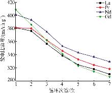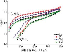 替代 元素 | 极限电 流密度/ (mA·g-1) | 电荷转 移电阻/ Ω | 高倍率 放电性能HRD1500/% | 交换电 流密度(I0)/(mA·g-1) | 氢扩散系 数(D0)/(× 10-11 cm2·s-1) |